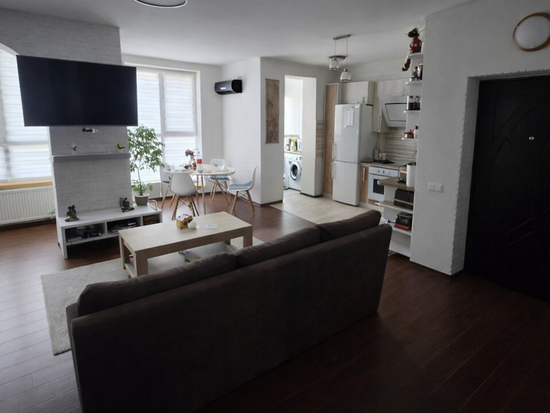 Простора дворівнева квартира, з продуманим плануванням та функціональними зонами для комфортного життя.